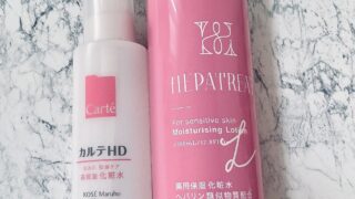 2つの大きな違いはテクスチャーと保湿力かなと思います。サラっとしたテクスチャーでさっぱりめな使い心地のヘパトリートに対し、カルテHDはとろみがありお肌をしっとりさせてくれて潤いが続きます。肌なじみはどちらもよくしっかり浸透してくれますが、ヘパトリートの方がより浸透が早いように感じます。