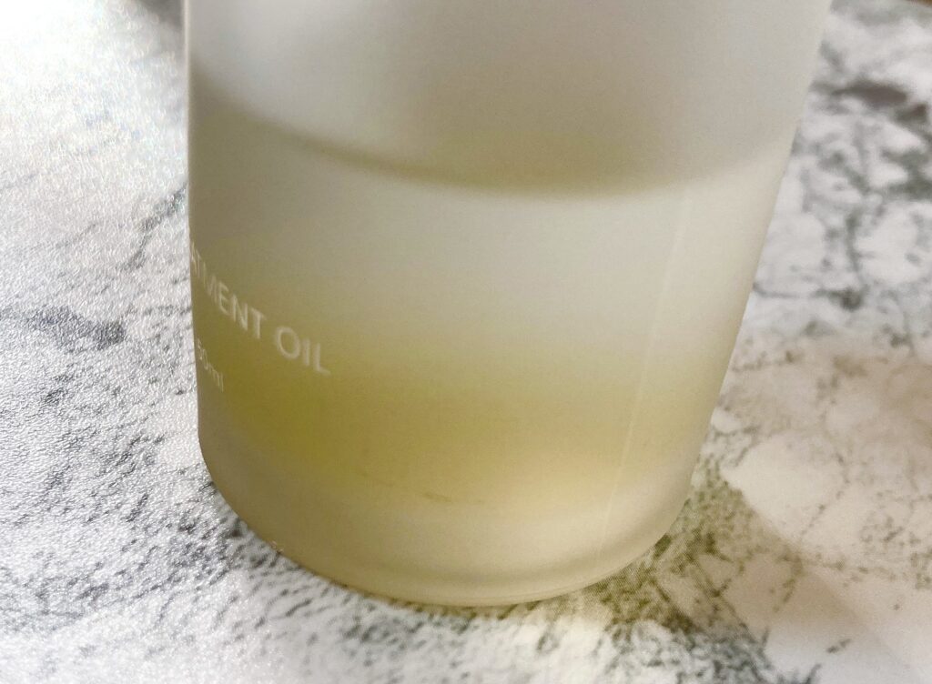 やや重めのオイルに感じますが、うるおい層が混ざることで伸ばしやすいテクスチャーになっています。