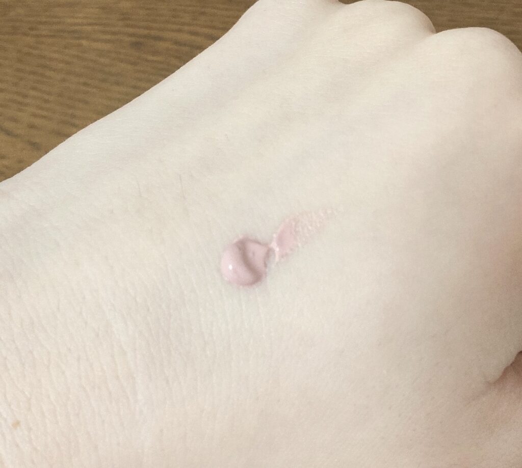 リキッドチークの色味はかなり明るめのピンクで、白みの強い色でした。